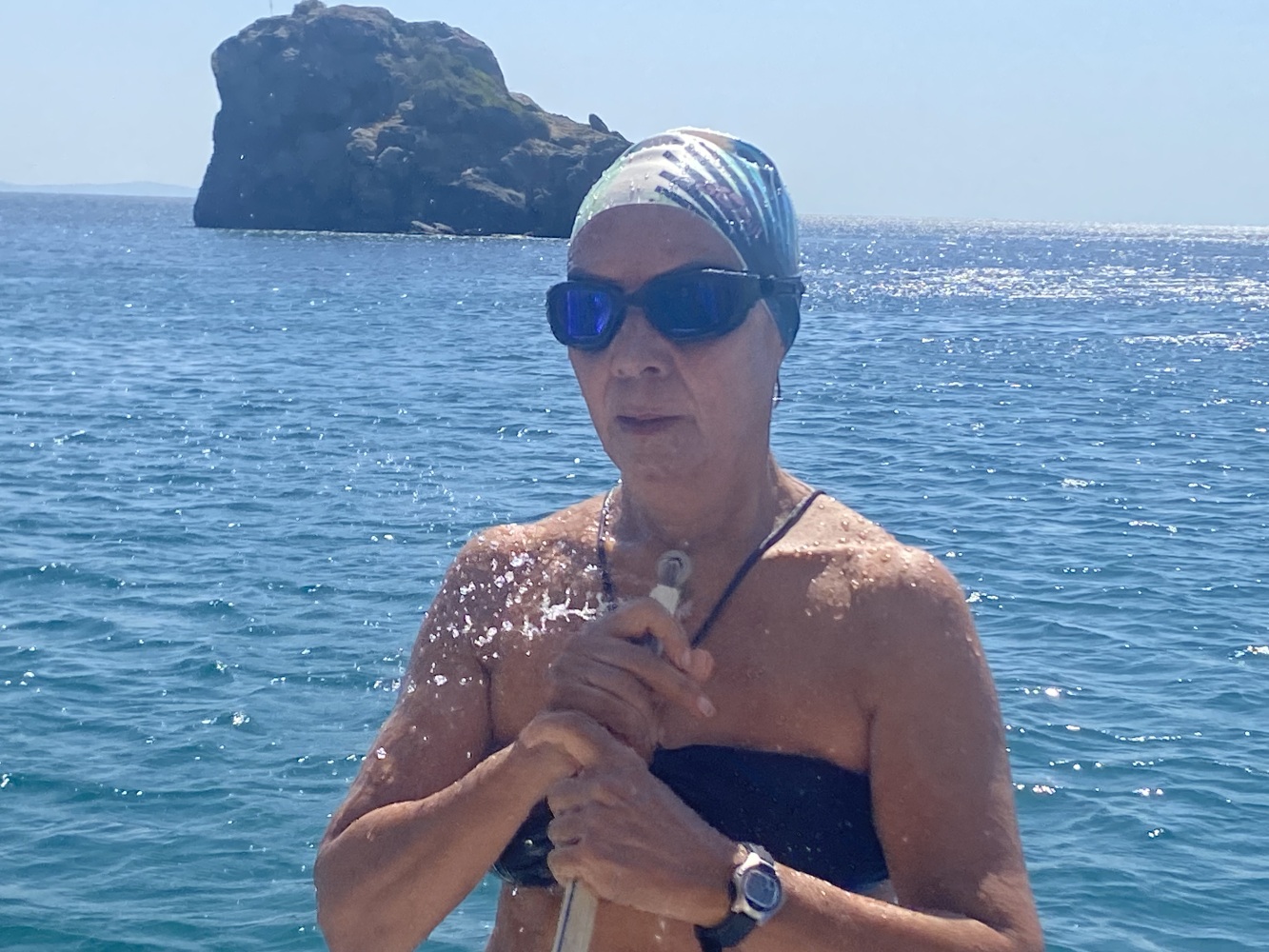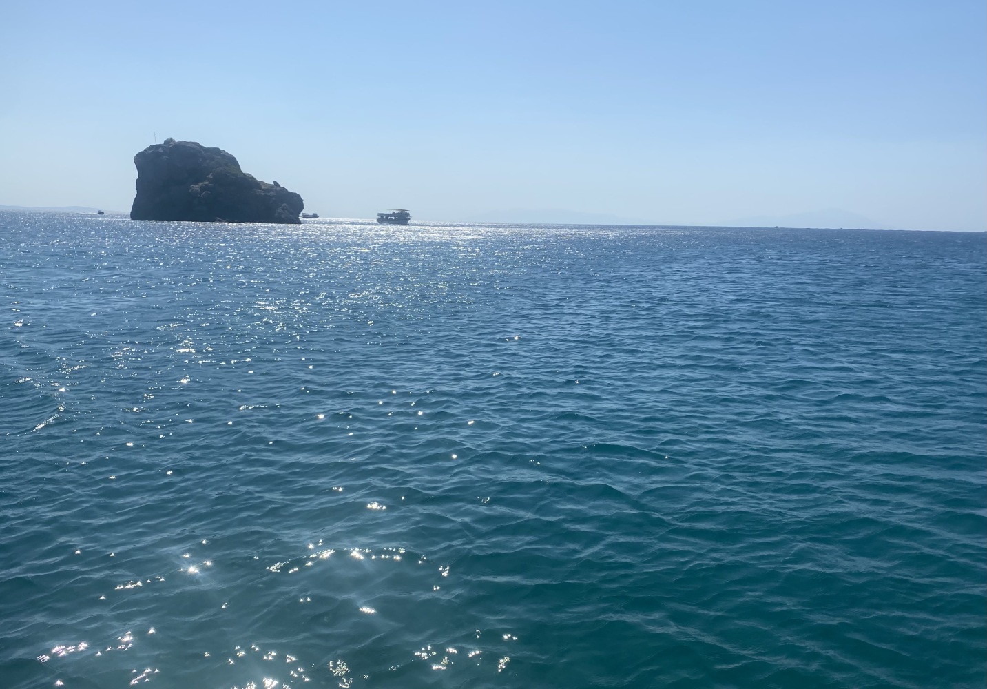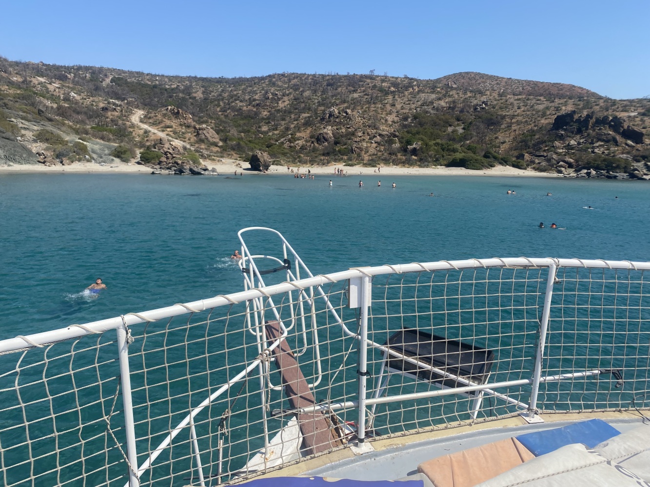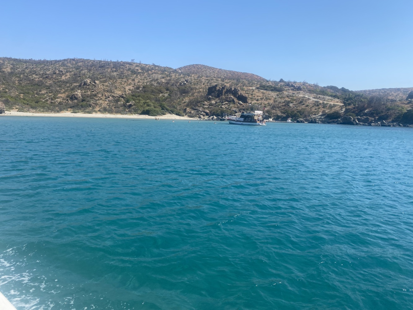 Rüzgar dalga fırtınayla kıyıya paralel kuzeybatı istikametinde uzun süre yolladık. Öğle molası vereceğimiz Demircili plajlarına yakın bir defa yüzme molası verdik. Menüden uskumru ızgara seçtiğimiz ikram molasında 2 saat kıyıda kaldığımızda bu defa ben de yüzdüm. Sonrasında geldiğimiz Yağcılar kıyısında da yüzdük. Dönüşte Sığacık’tan yakın Akvaryum plajında ise bizim ekip seyretmeyi tercih ettik.