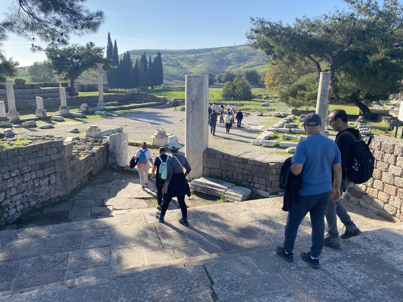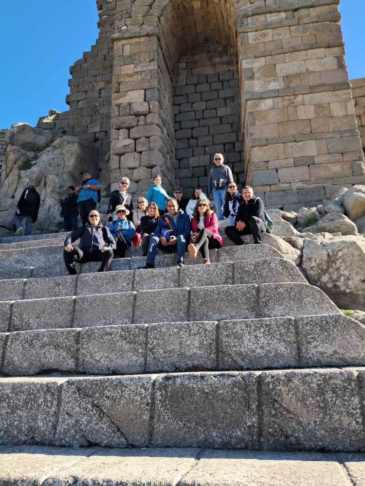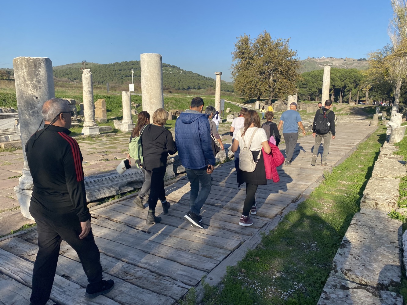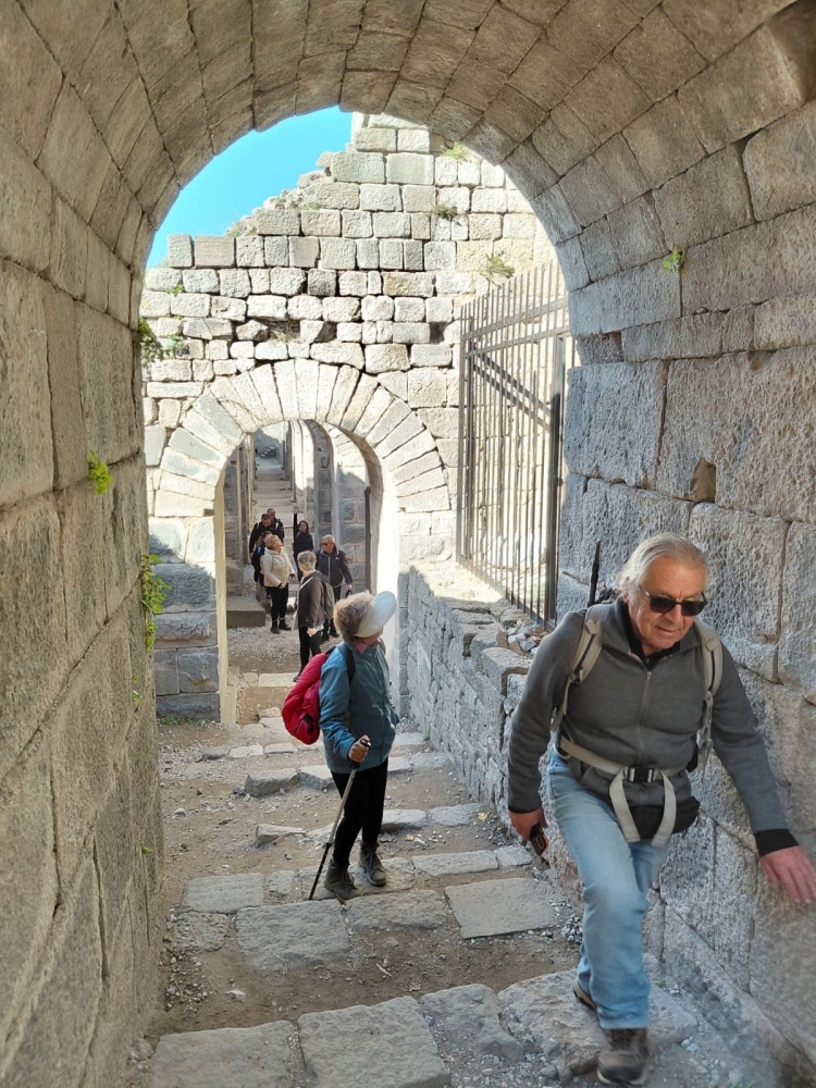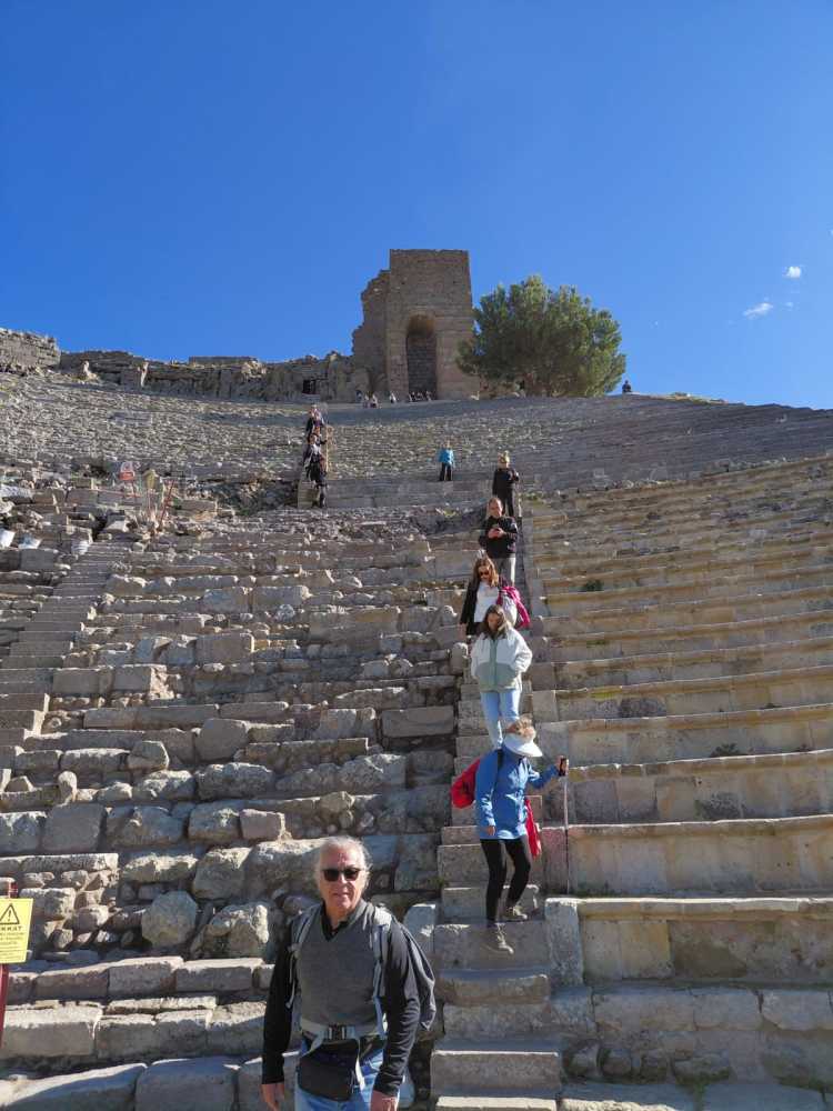 Bergama Akropol ve Asklepion’u gezdik. Arkaik dönemlerden itibaren yerleşim yaşayarak Anadolu’da büyük bir krallık olan Bergama, Pers istilasını bitiren İskender’den sonra Helenistik ve Roma dönemilerini görkemli olarak yaşayıp tüm yıkım ve çalmalara karşın kalan eserlerle dahi muhteşem bir antik kent görümünde uluslararası ziyaretleri coşkuyla yaşıyor.