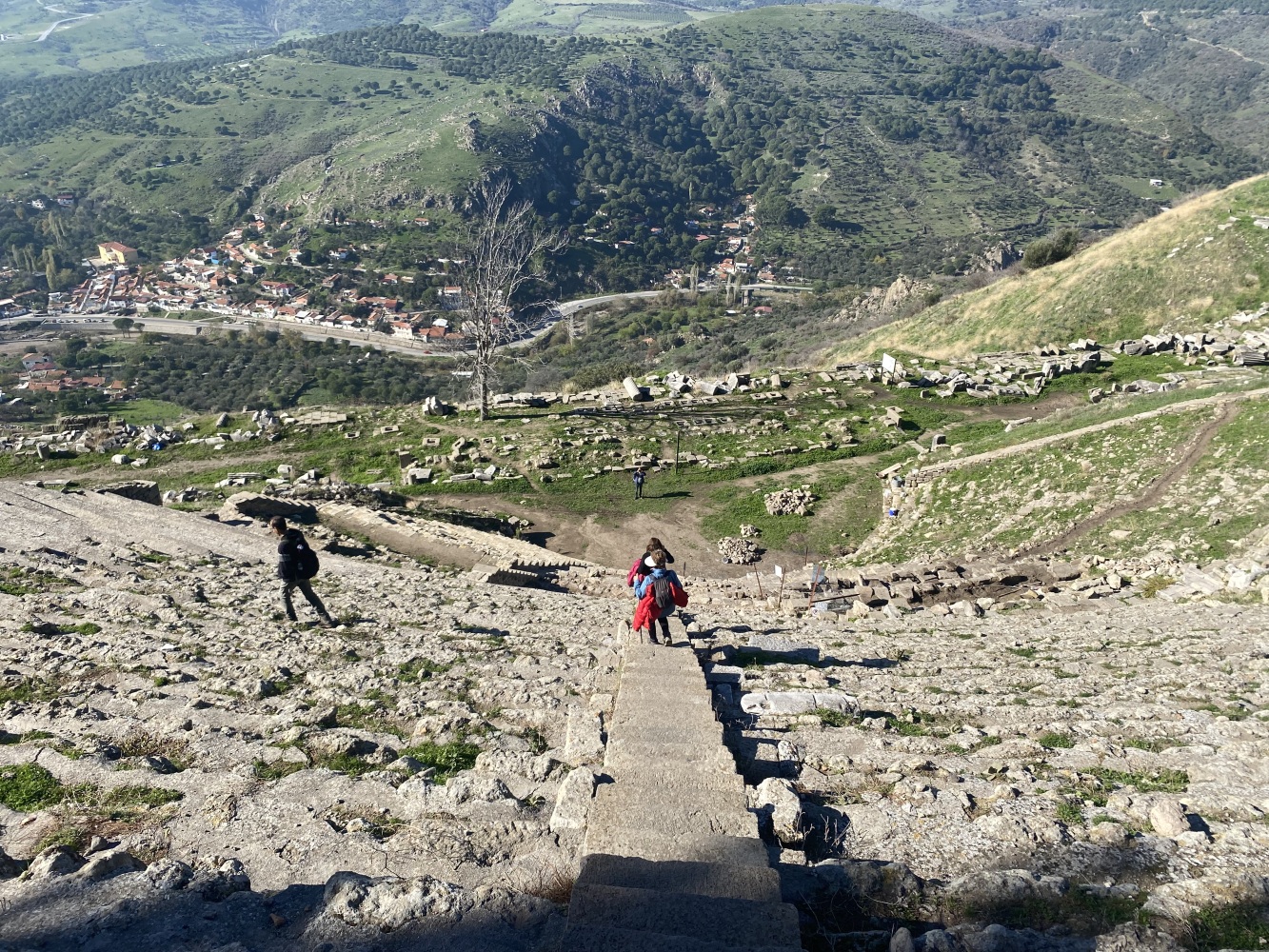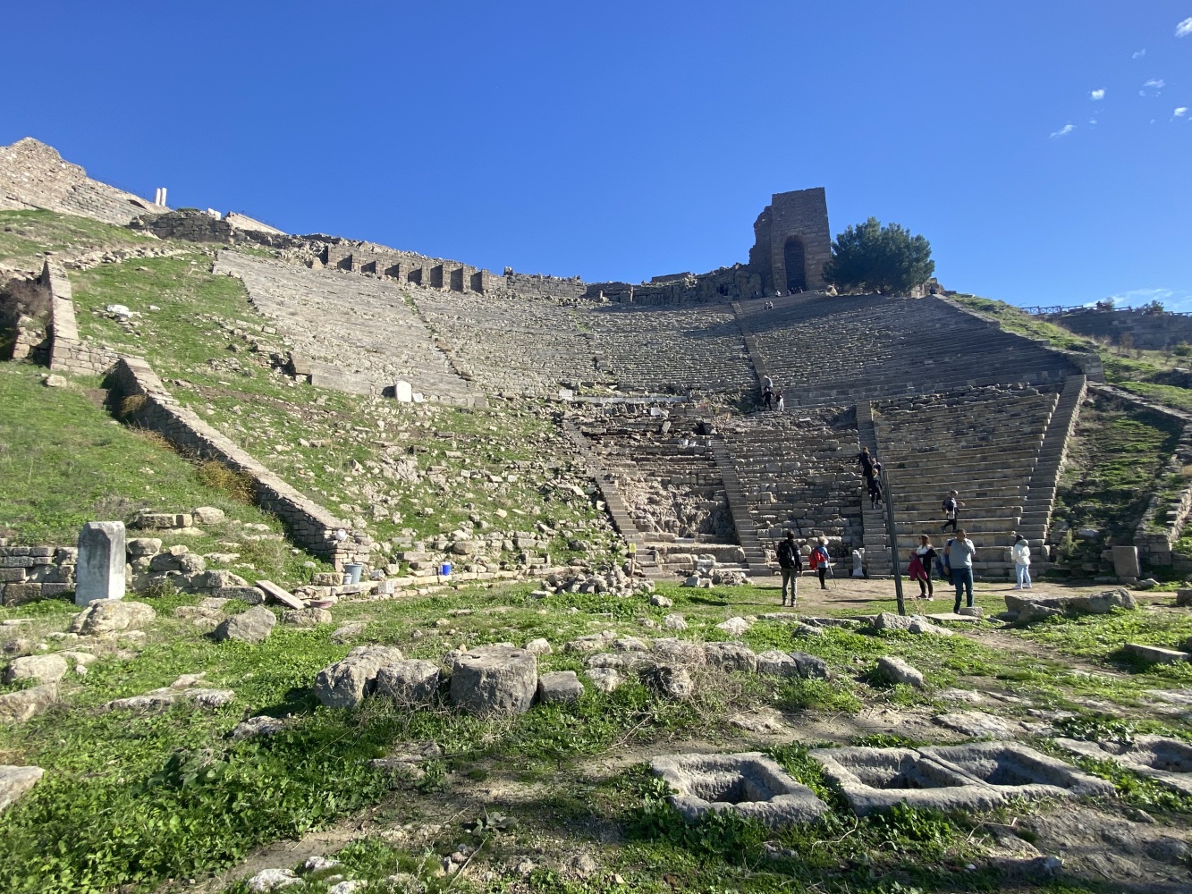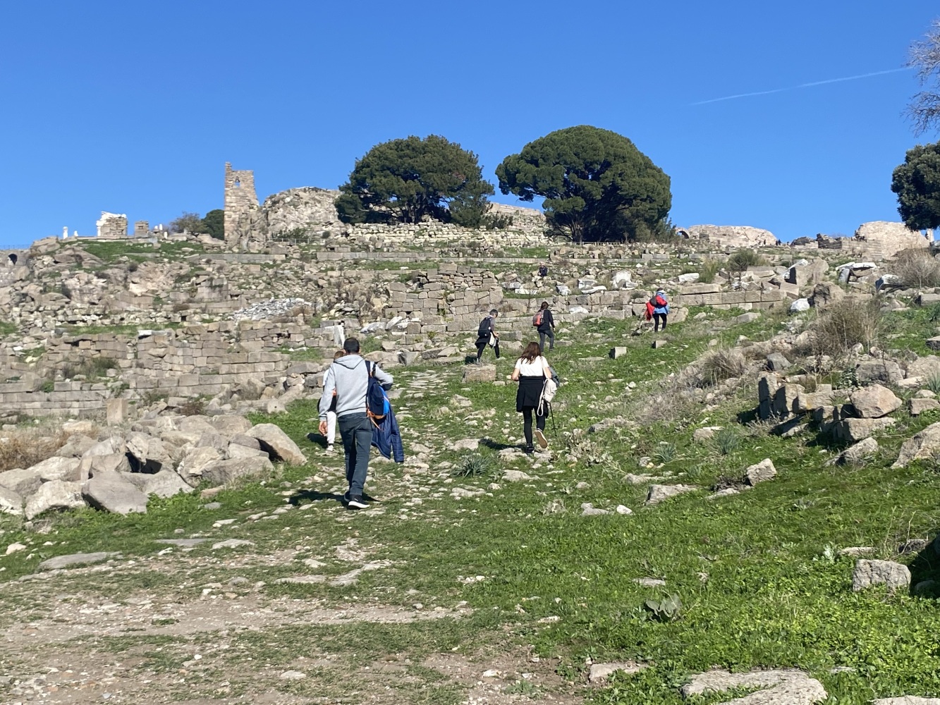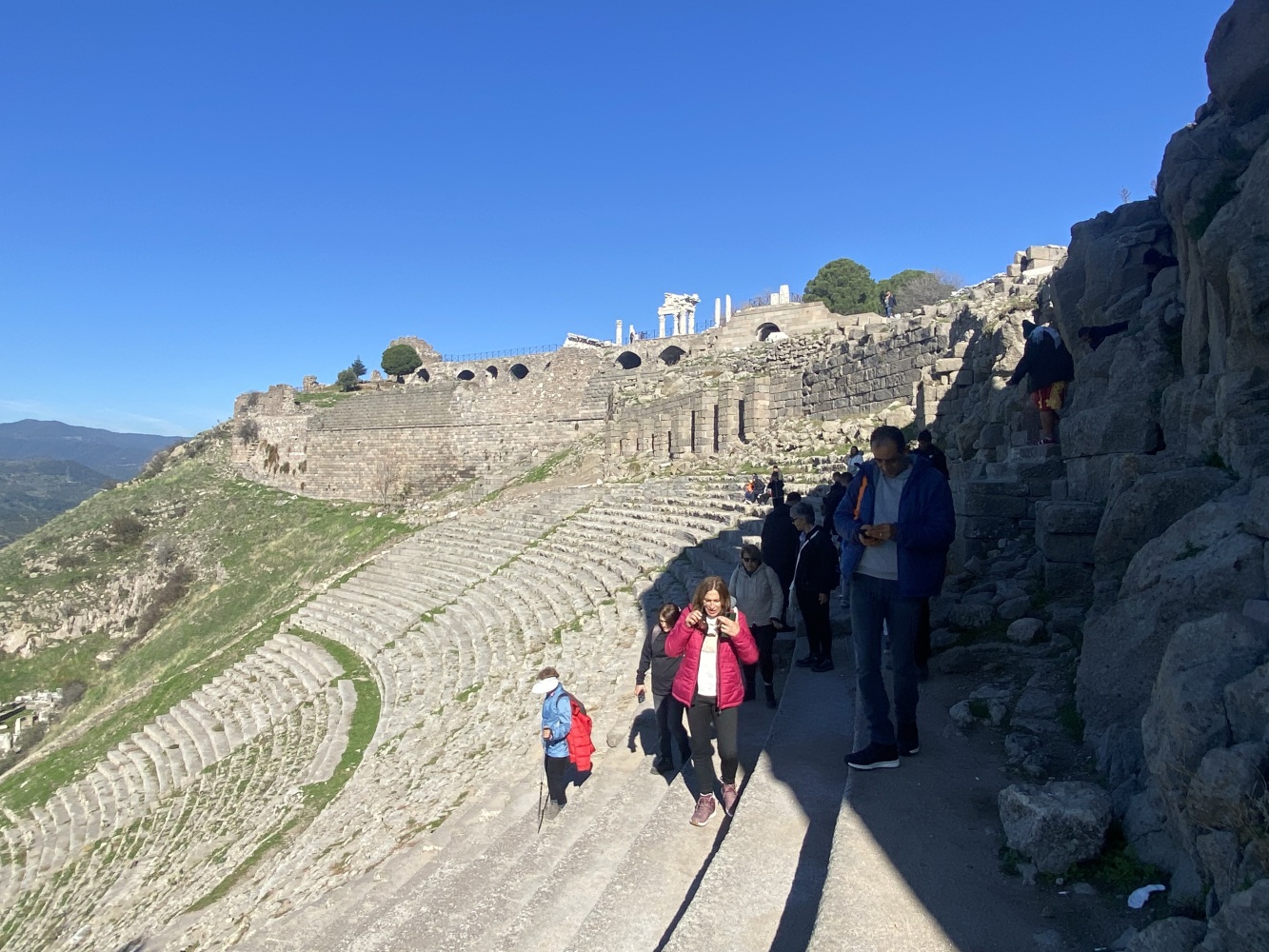 Bergama Akropol ve Asklepion’u gezdik. Arkaik dönemlerden itibaren yerleşim yaşayarak Anadolu’da büyük bir krallık olan Bergama, Pers istilasını bitiren İskender’den sonra Helenistik ve Roma dönemilerini görkemli olarak yaşayıp tüm yıkım ve çalmalara karşın kalan eserlerle dahi muhteşem bir antik kent görümünde uluslararası ziyaretleri coşkuyla yaşıyor.