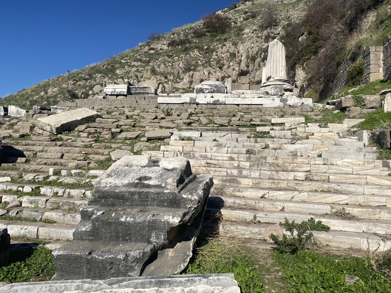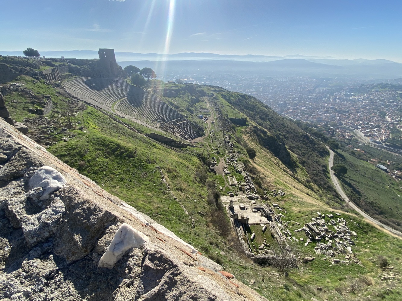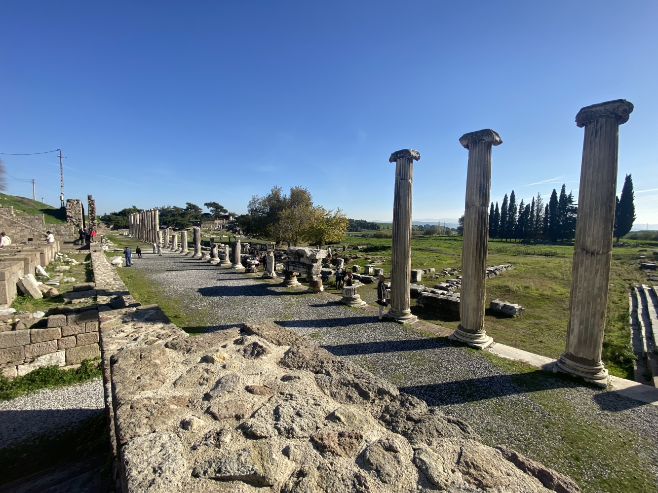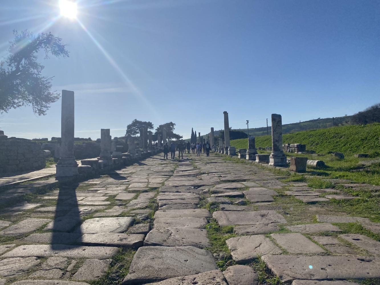 Bergama Akropol ve Asklepion’u gezdik. Arkaik dönemlerden itibaren yerleşim yaşayarak Anadolu’da büyük bir krallık olan Bergama, Pers istilasını bitiren İskender’den sonra Helenistik ve Roma dönemilerini görkemli olarak yaşayıp tüm yıkım ve çalmalara karşın kalan eserlerle dahi muhteşem bir antik kent görümünde uluslararası ziyaretleri coşkuyla yaşıyor.