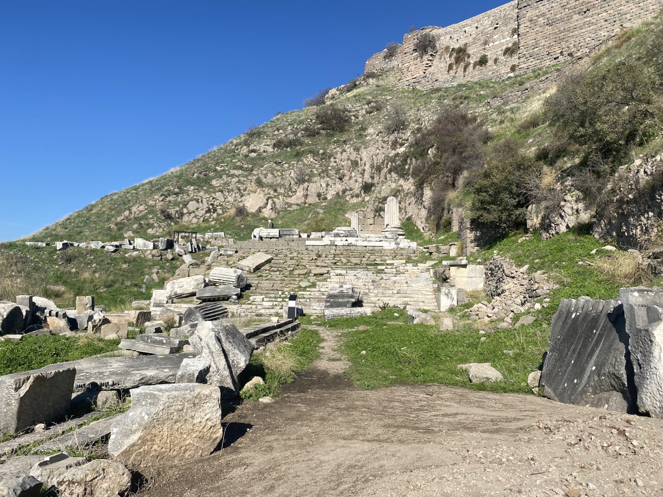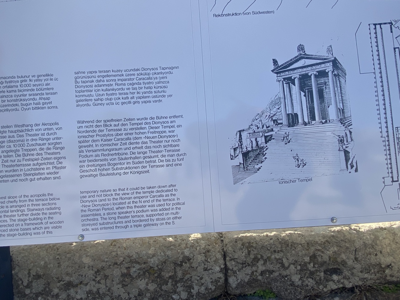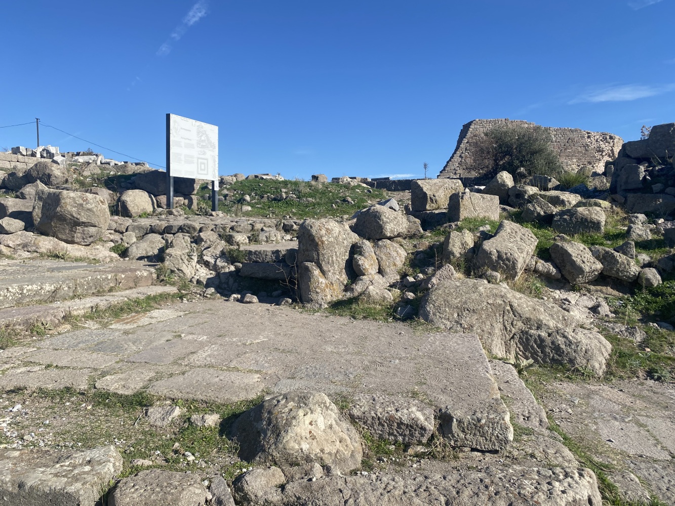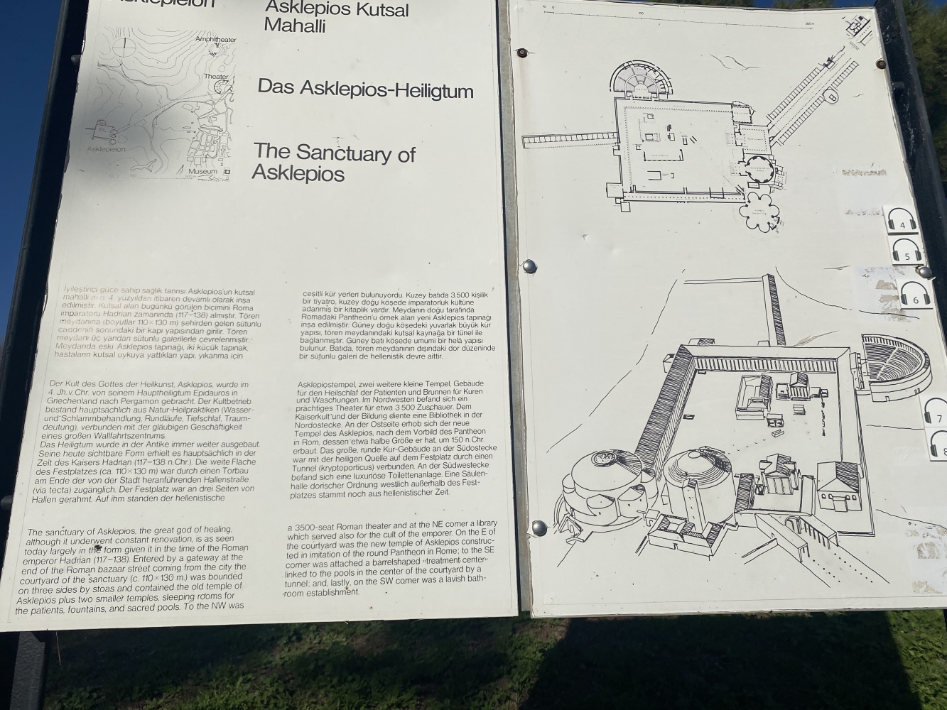 Öncelikle rehbersiz gezmek zor. Nereden başlayıp nereden devam edeceğini kestirmek kolay değil. Levhalarda şehir planı var ama levhalar yetersiz. Bazı levhalar iyi okunmuyor ve bazılarını bulmak bile zor. Örneğin Athena Tapınağı bilgilendirme levhasını oldukça iyi saklamışlar. Belki de iyi bir ziyaret rotası çizemediğimizden yönlendirme oku ve bilgi levhasına rastlamadığımız için ünlü kütüphaneyi pas geçtikti. Alanda gördüğüm en güzel bilgilendirme levhası şöyle idi: Tiyatroya gider. Oysa Helenistik tiyatro heryerden gözüküyordu zaten. Dionysus tapınağının yanına kadar gittiğimiz halde bilgileridirme levhası yoktu. Tiyatro terasının devamındaki bazı önemli noktaları açıp ziyaretçilerin gezebilmesi için epeyce eziyet ediliyor. Arkadaşlarımız yılmadılar, uğraşıp açtırdılar.