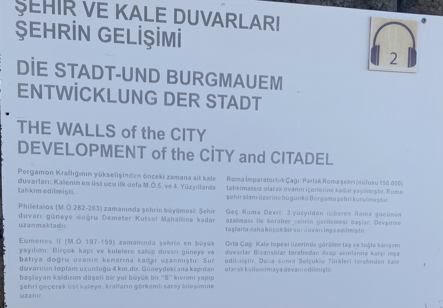 Dünya insanları çok uzaklardan Bergama’yı ziyarete geliyorlar. Bergama antik kenti muhteşem bir tarihi miras. Kazılar bitmiş, kitaplar yazılmış. Vakti zamanında ziyaretçiler için yönlendirme okları ve bilgi levhaları hazırlanmış, bazı yerlere tahta yürüyüş yolları kurulmuş. Ama yeterli değil.