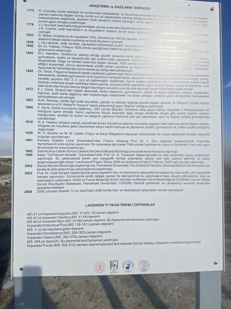 LAODİKYA (26 Kasım 2025) Yayın tarihi 28 Kasım 2025 Şinasi Yüksel Geçen sene ziyaret edilmediğimiz Laodikya’yı nihayet görebildik. Oldukça etkileyici bir antik kent. Fotoğraflar ve Levhalar.