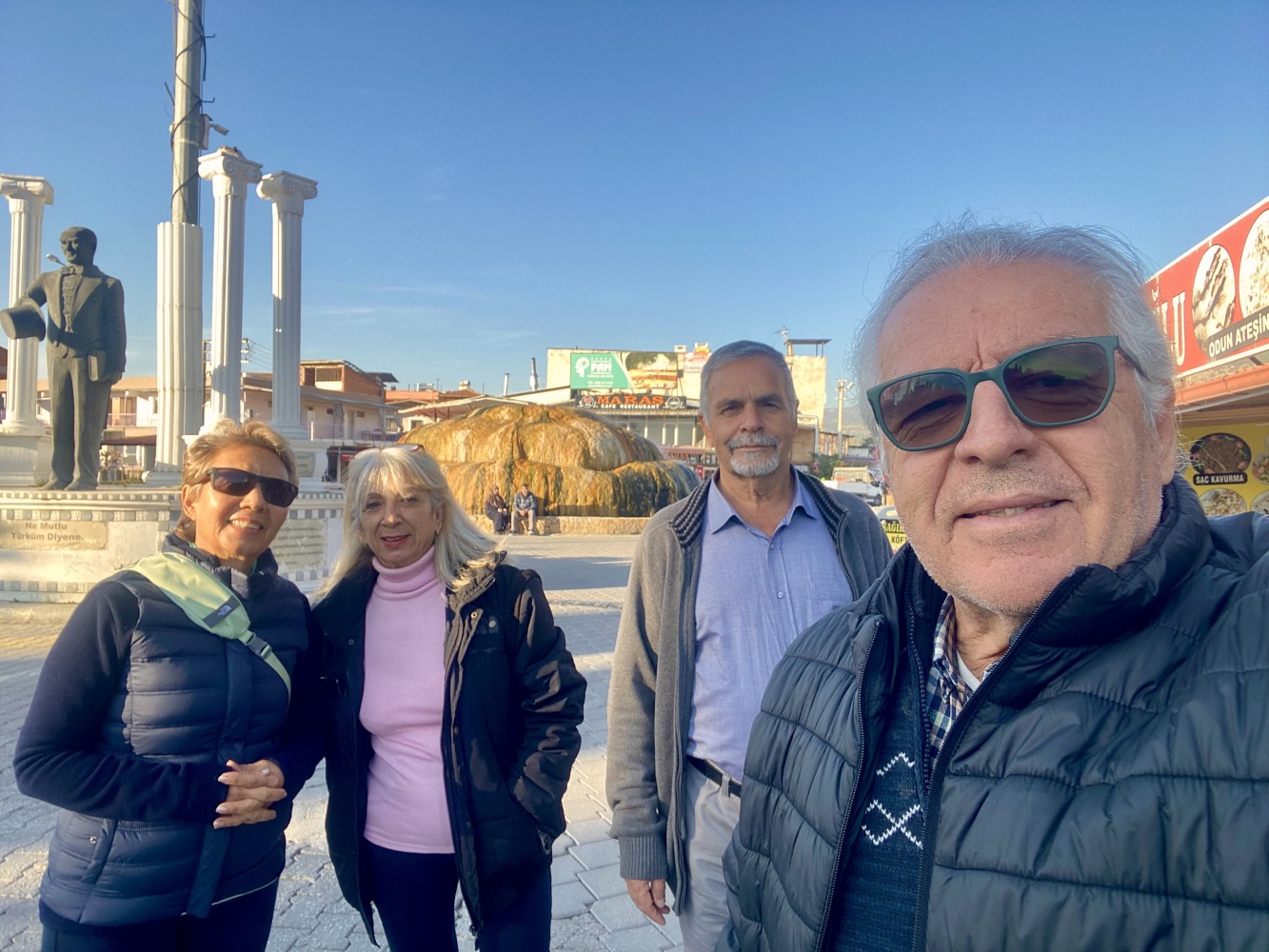 Bizim emektar pasatla Denizli Karahayıt yolculuğumuzu bu defa Villakent’ten komşularımız Nurhayat ve Etem Gül ile  birlikte yaptık. Onların da bizim gibi antik kent ziyaretlerini sevmeleri çok iyi oldu; Hierapolis, Laodikya ve dönüş günü de Afrodisyas’ı gezdik. İlaveten hafta içinde Honaz ilçesine yakın Kaklık mağarasını gördük.