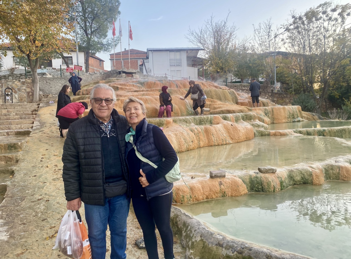 ‘Sevinler’le son 2 senedir tam da bu vakitlerde birlikte Karahayıt‘ta beşer günlük kaplıca keyifleri yapmıştık. Daha önce de yazmıştım, “Sevinler” diye nitelediğim Villakent‘ten ve Petkim’den arkadaşımız Sevin Ergmen ve eşi Erkan Özer’in seramik kursunda birlikte oldukları keyifli, neşeli ve saygı-sevgi dolu arkadaşları. Artık bizleri de gruptan kabul ediyorlar.
