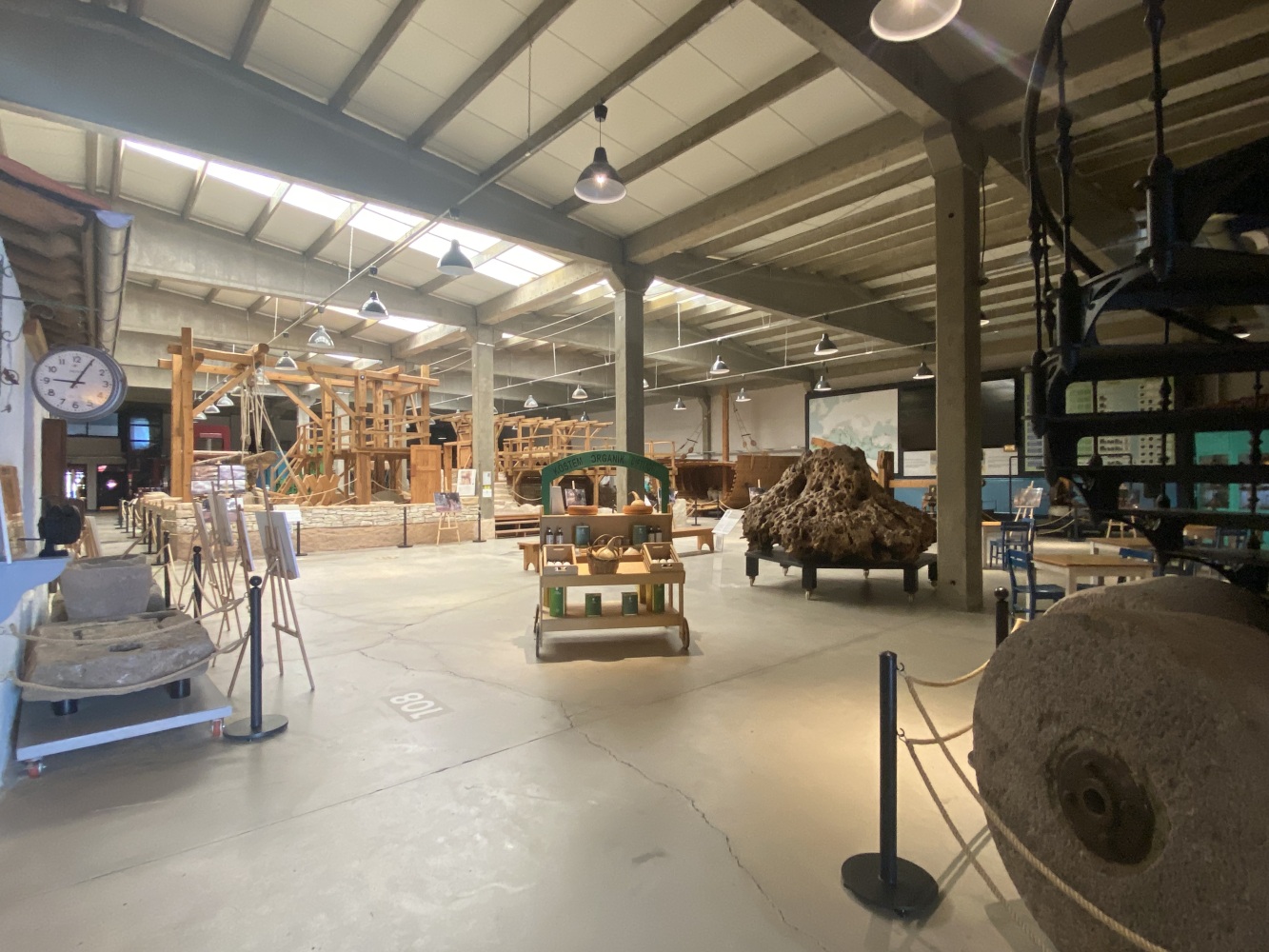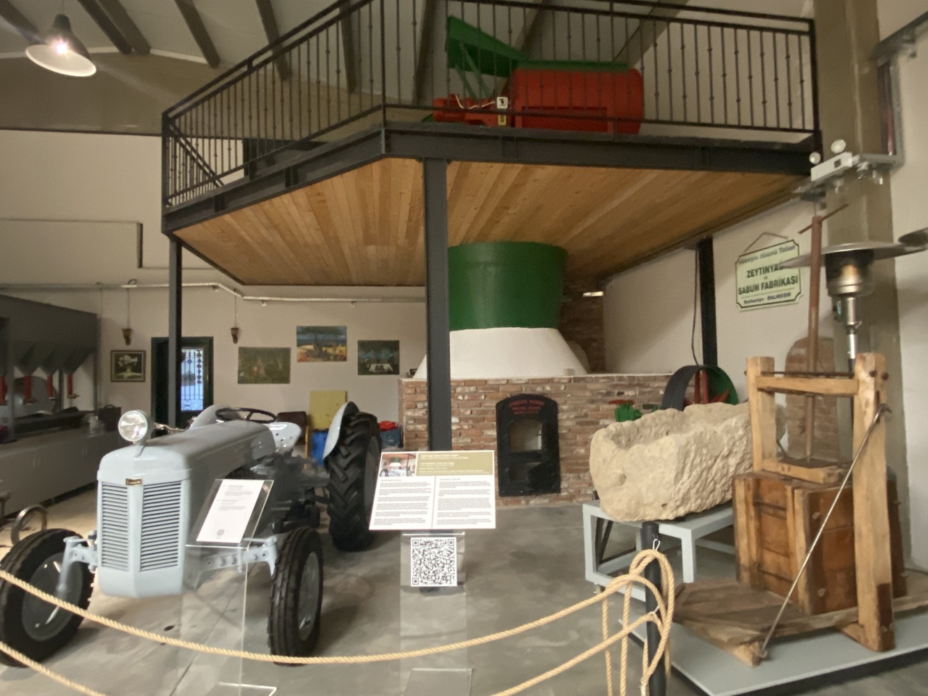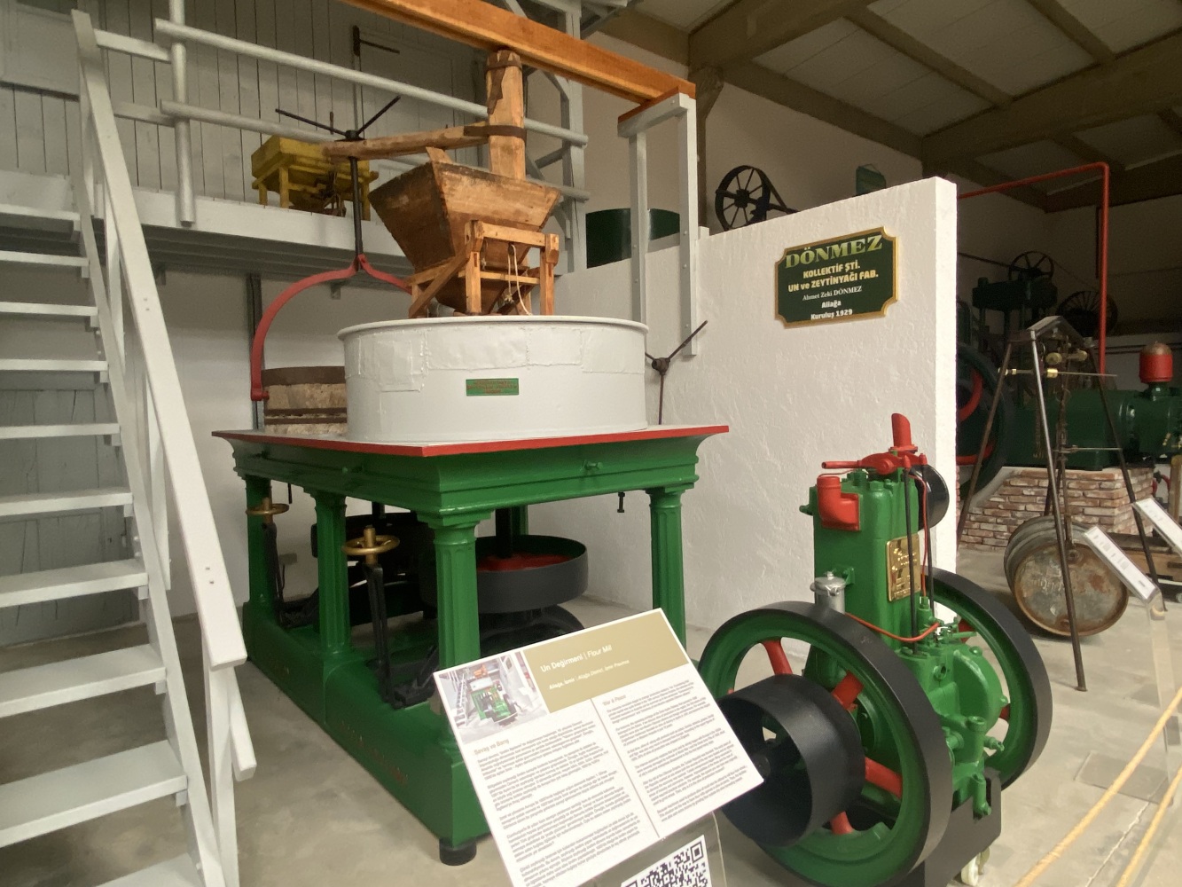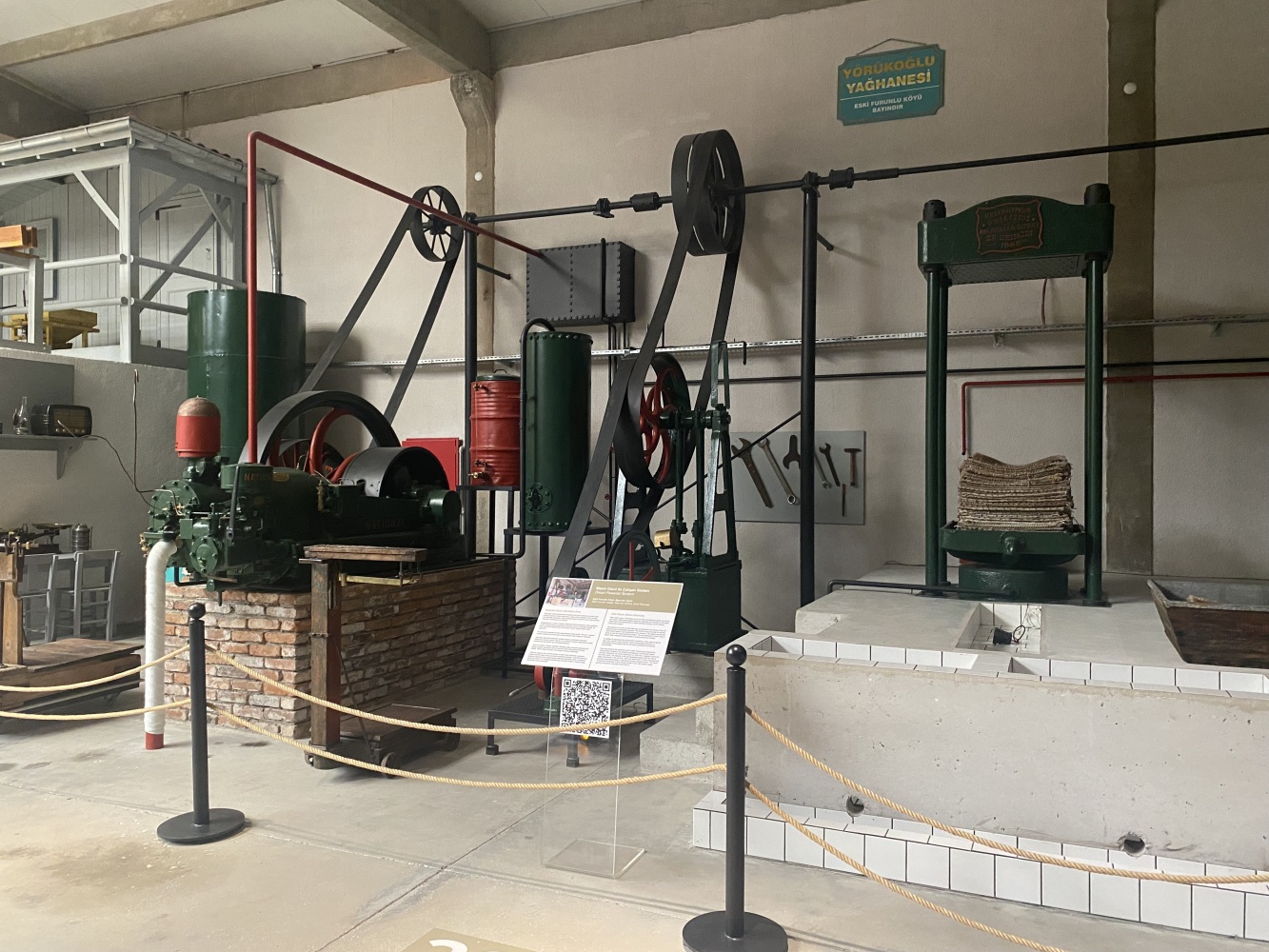 Cumhuriyetin ilk yılları hem savaşın yaralarının sarıldığı hem de ekonomik kalkınma hamlelerinin hayata geçirilmeye çalışıldığı bir dönemdir. Sanayi ve ticaret alanında boşalan yerleri Türk girişimciler doldurmaya başlamıştır. Bununla birlikte dönemin imkansızlıkları ve sermaye eksiklikleri de pratik çözümler gerektirmiyor değildir. Örneğin, burada gördüğümüz sistem aslen buğday öğütmek için kullanmaktaydı. Öyleyse bu sistem neden zeytinyagı üretim müzesi’nde yer almaktadır?