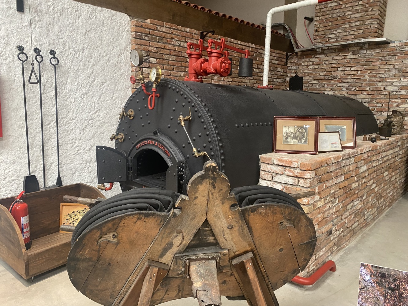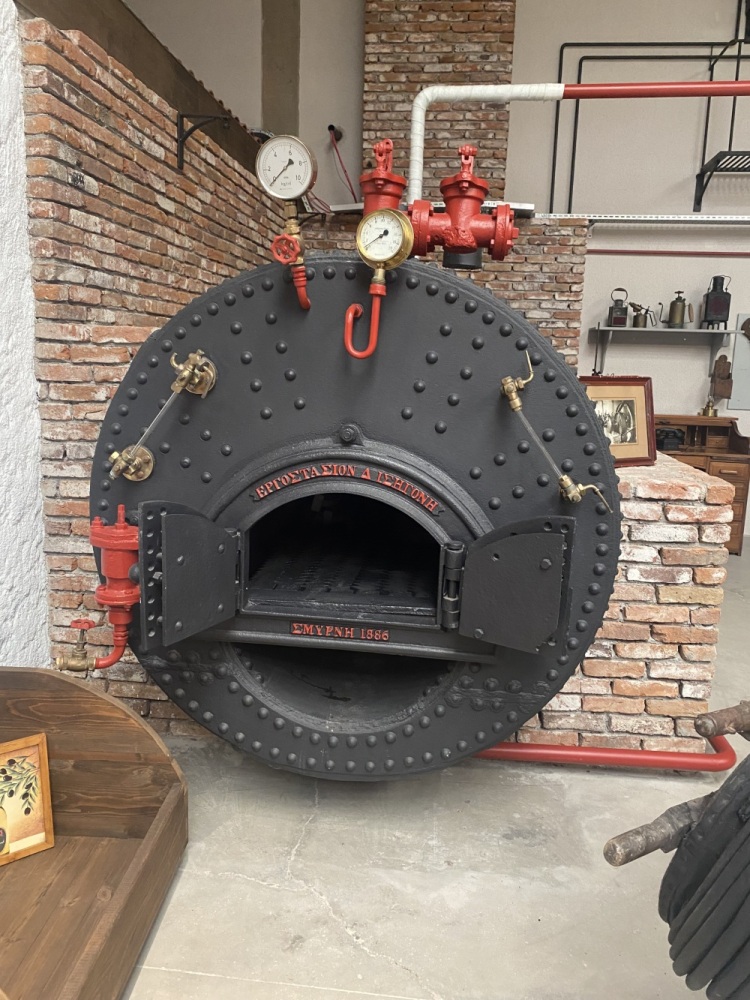 Gördüğünüz kazan ve makineler, Köstem Zeytinyağı Müzesi tarafından onarılmış ve dönemin zeytinyağı fabrikasını birebir yansıtacak şekilde yeniden kurulmuştur. Sistemin merkezinde yer alan buhar kazanı, 1886’da üretilmiş orijinal bir kazandır. Bu kazanları Issigonis ailesi İzmir Alsancak’taki fabrikalarında üretiyordu.