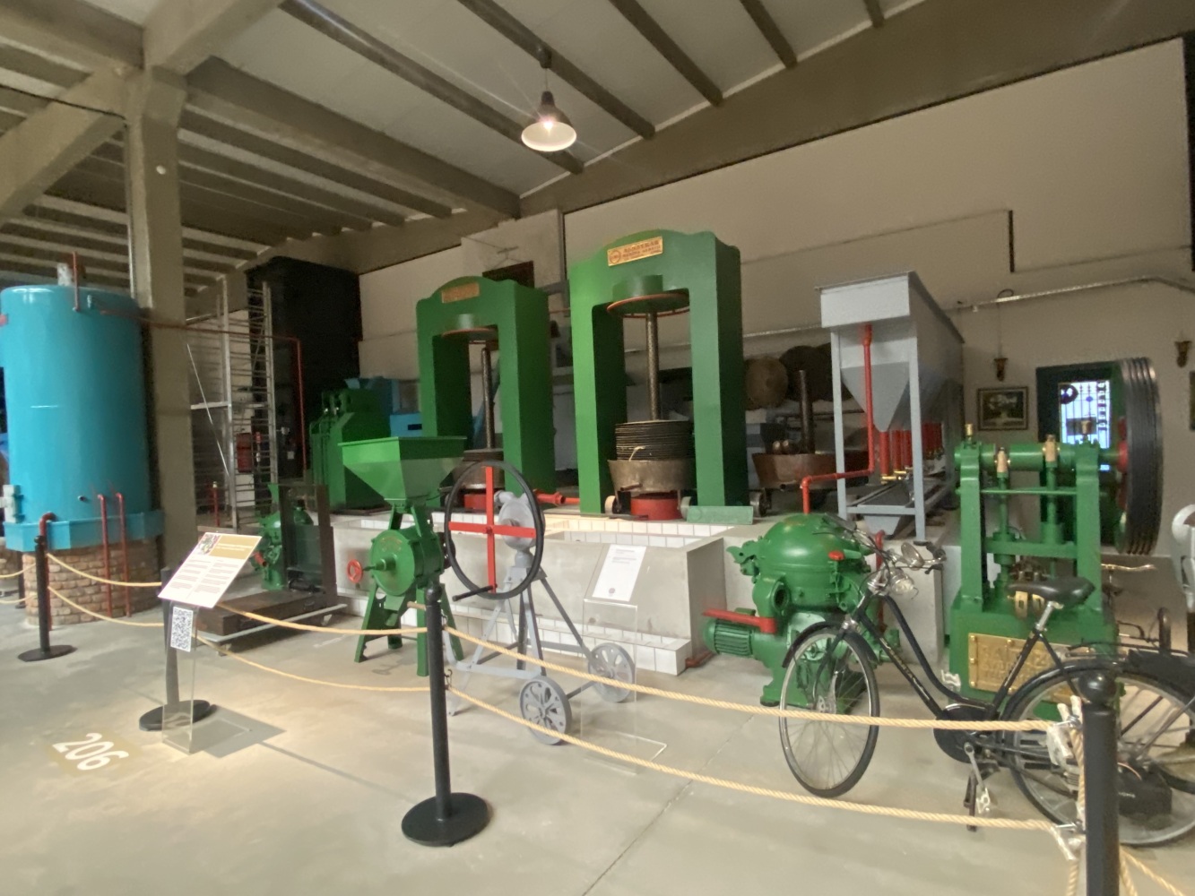 Sergilediğimiz bu sistem, Köstem Zeytinyagı Müzesi tarafından elden geçirilmiş ve tüm fonksiyonlarıyla çalışabilecek durumda olan bir zeytinyağ tesisidir. Bu tesis müzemize nakledilmeden önce 2000’li yılların başına kadar üretim yapıyordu.