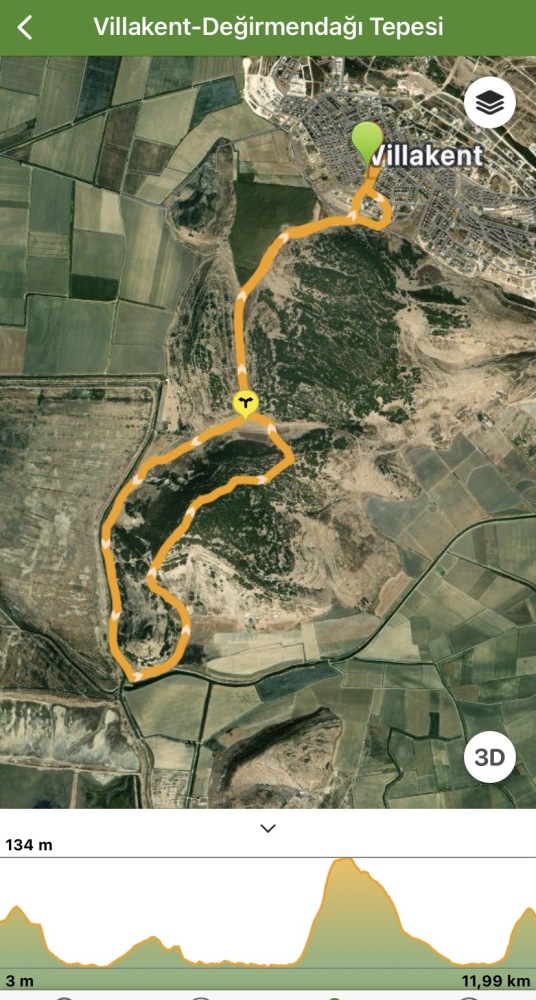 Yağmurlu hava tahminlerini takdir ederek Villakent parkurlarında yürümek üzere Saat 9:30’da Villakent Merkez’den başlayıp Sazlıgöl, Araptarlası, KöpekliEvler, CennetinArkaKapısı, Değirmendağı Semer ve DüzlenTepe’de mola verdik. Dönüşte de 6 km katedip, fazla yağmur yemeden, toplamda yaklaşık 12 km doğa yürüyüşü yaptık.