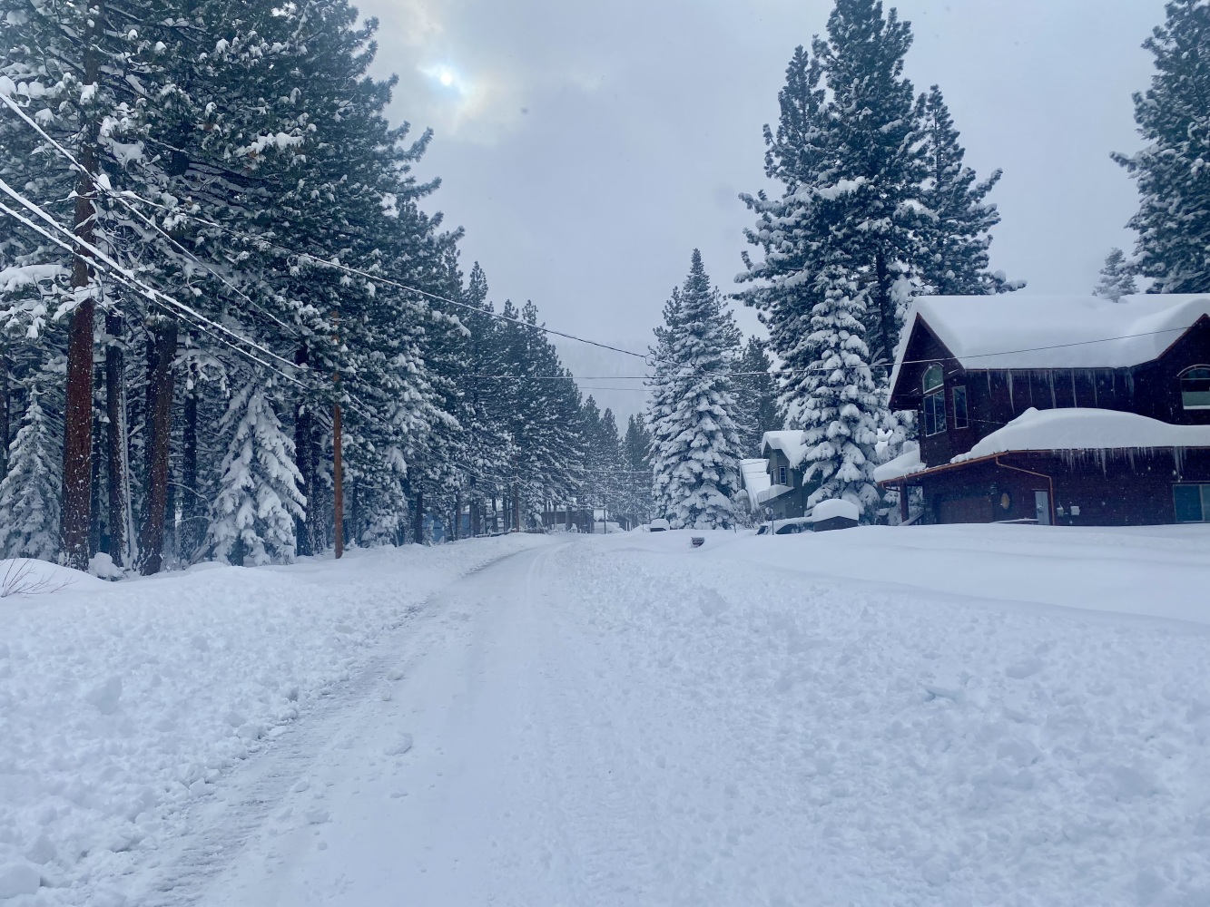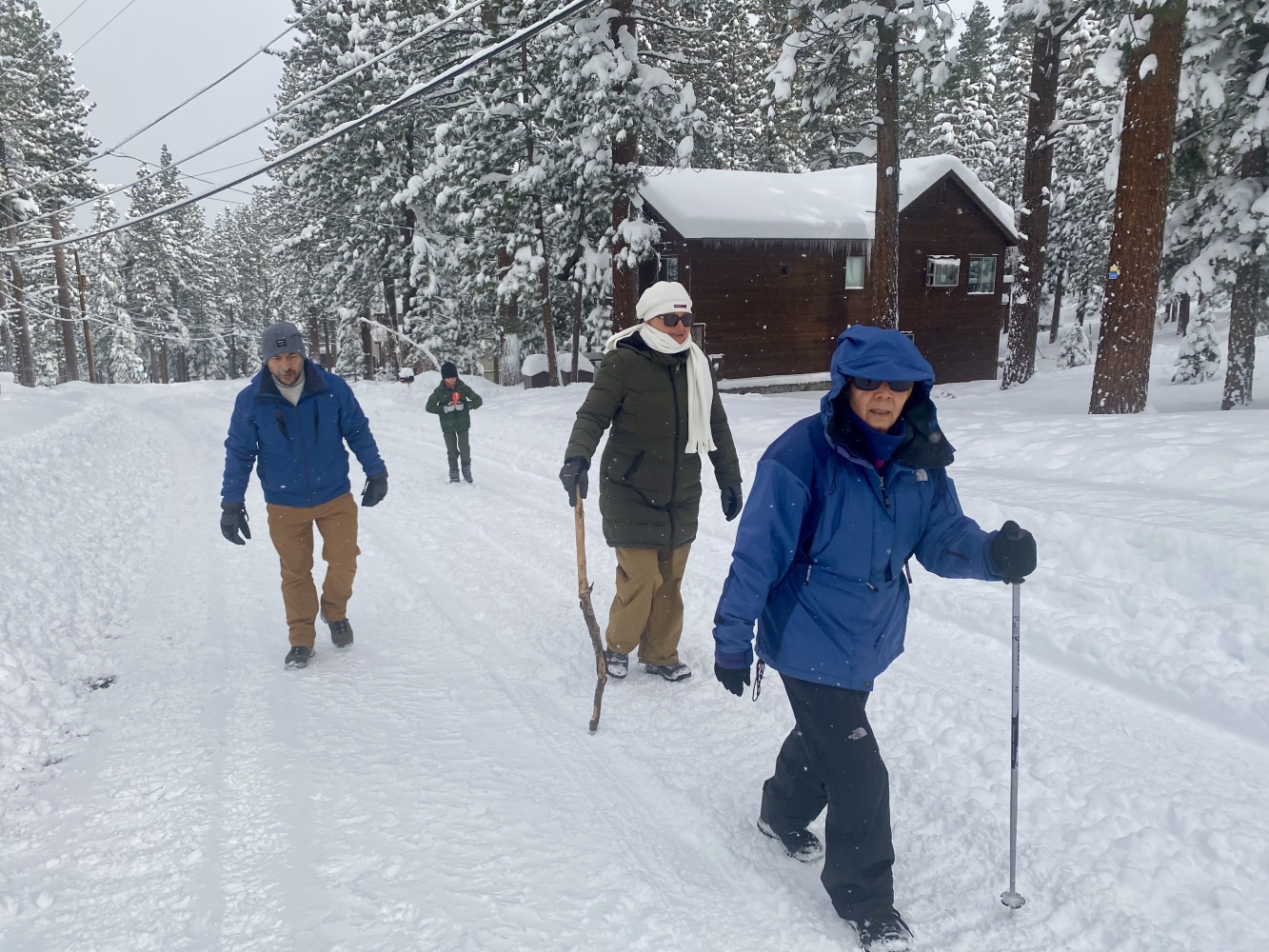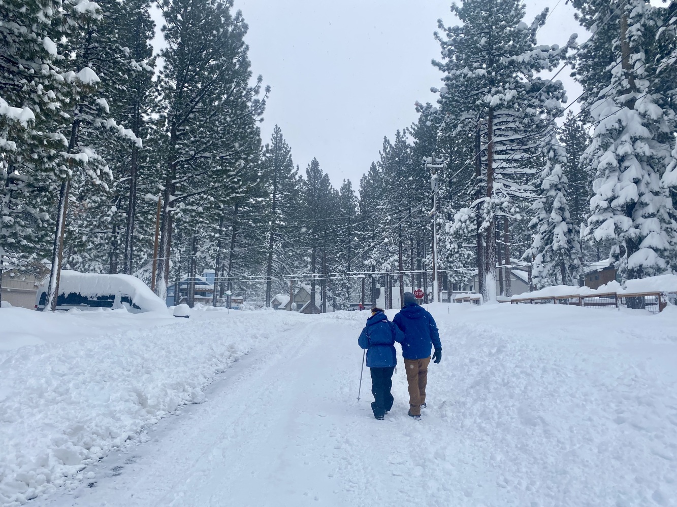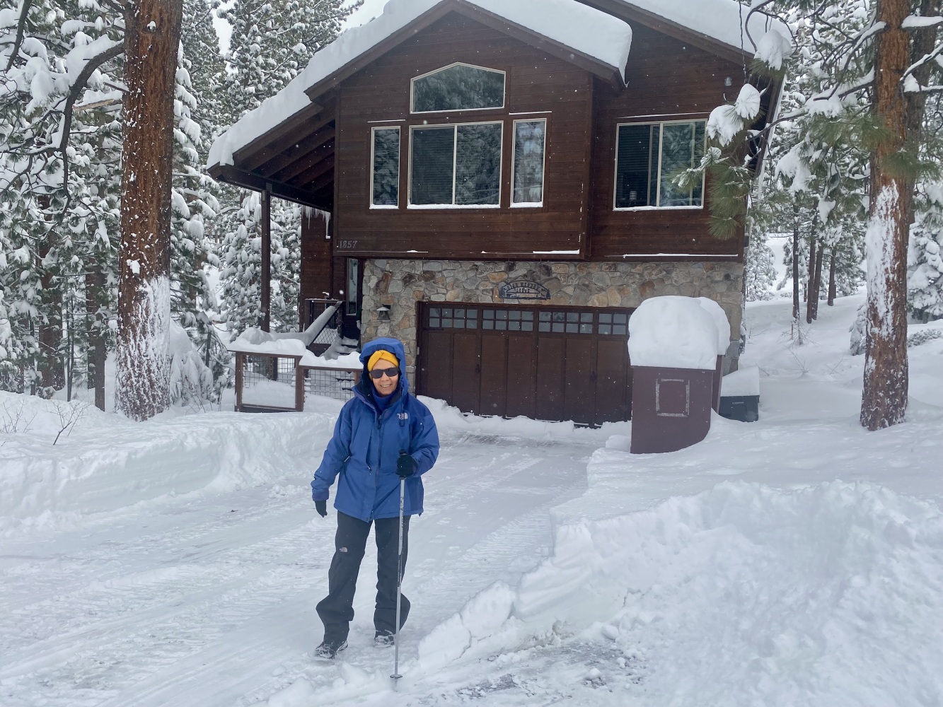 South Lake Tahoe’de Pazartesi öğle saatlerinden itibaren başlayarak 2,5 gün süren kar yağışı nihayet bu sabah durunca biz de kahvaltıdan sonra High Meadow’deki evden itibaren çevrede bir yürüyüş programı yaptık. Açılmış yollar dahi kar ve buzla kaplı iken yürümek kolay değildi. Bizden başka sadece birkaç kişi gördük ve bir de bir yaşlarındaki çocuğunu sırtında taşıyan genç bir anne. Bir süre daha devam ettik, derken bir noktada Ayşen kayıp kara oturunca yürüyüşe devam etmeyi bitirerek düşündüğümüzden daha önce evimize döndük.