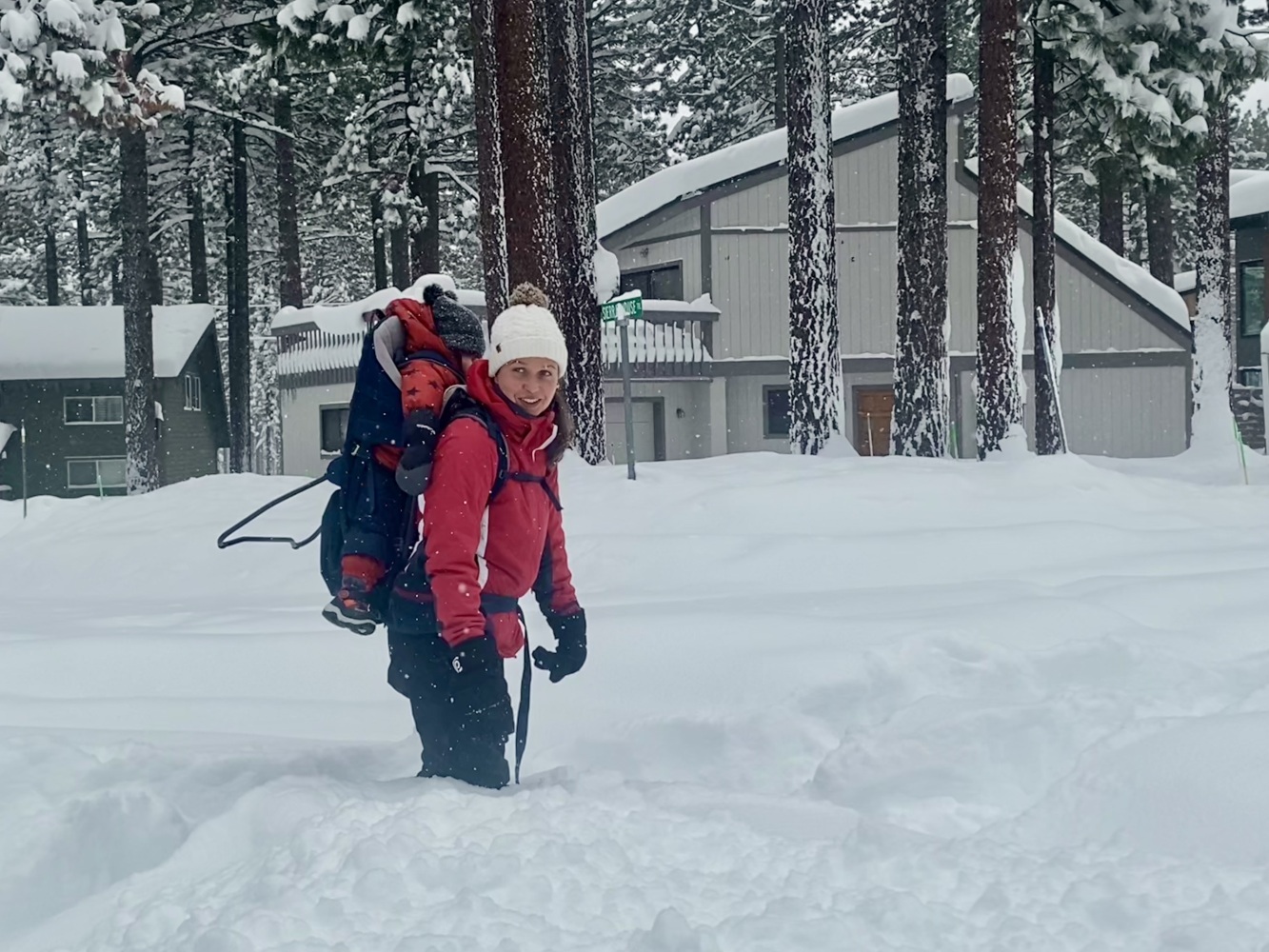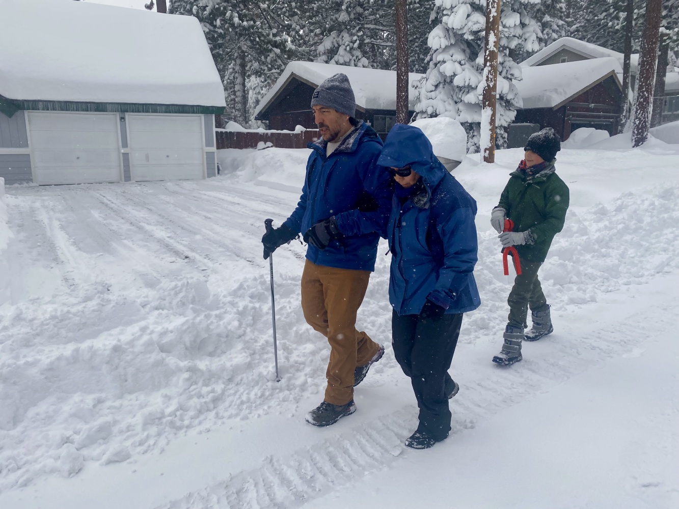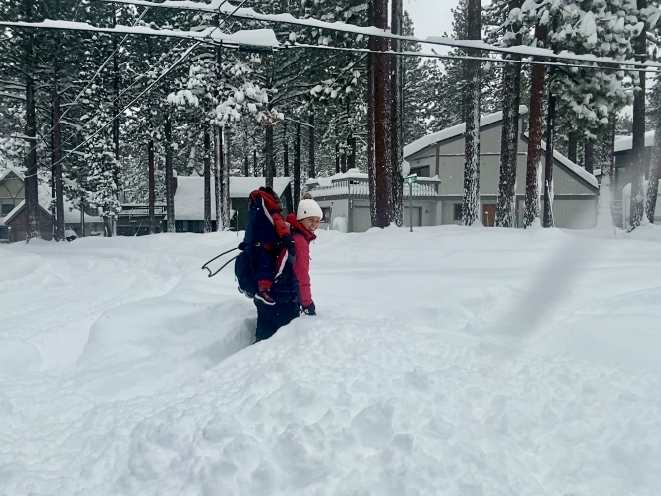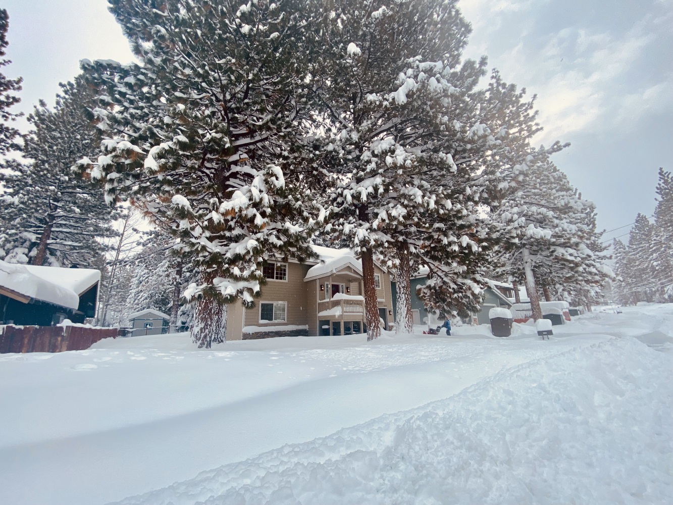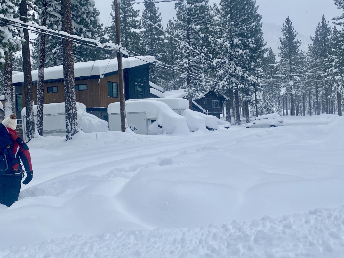 South Lake Tahoe’de Pazartesi öğle saatlerinden itibaren başlayarak 2,5 gün süren kar yağışı nihayet bu sabah durunca biz de kahvaltıdan sonra High Meadow’deki evden itibaren çevrede bir yürüyüş programı yaptık. Açılmış yollar dahi kar ve buzla kaplı iken yürümek kolay değildi. Bizden başka sadece birkaç kişi gördük ve bir de bir yaşlarındaki çocuğunu sırtında taşıyan genç bir anne. Bir süre daha devam ettik, derken bir noktada Ayşen kayıp kara oturunca yürüyüşe devam etmeyi bitirerek düşündüğümüzden daha önce evimize döndük.
