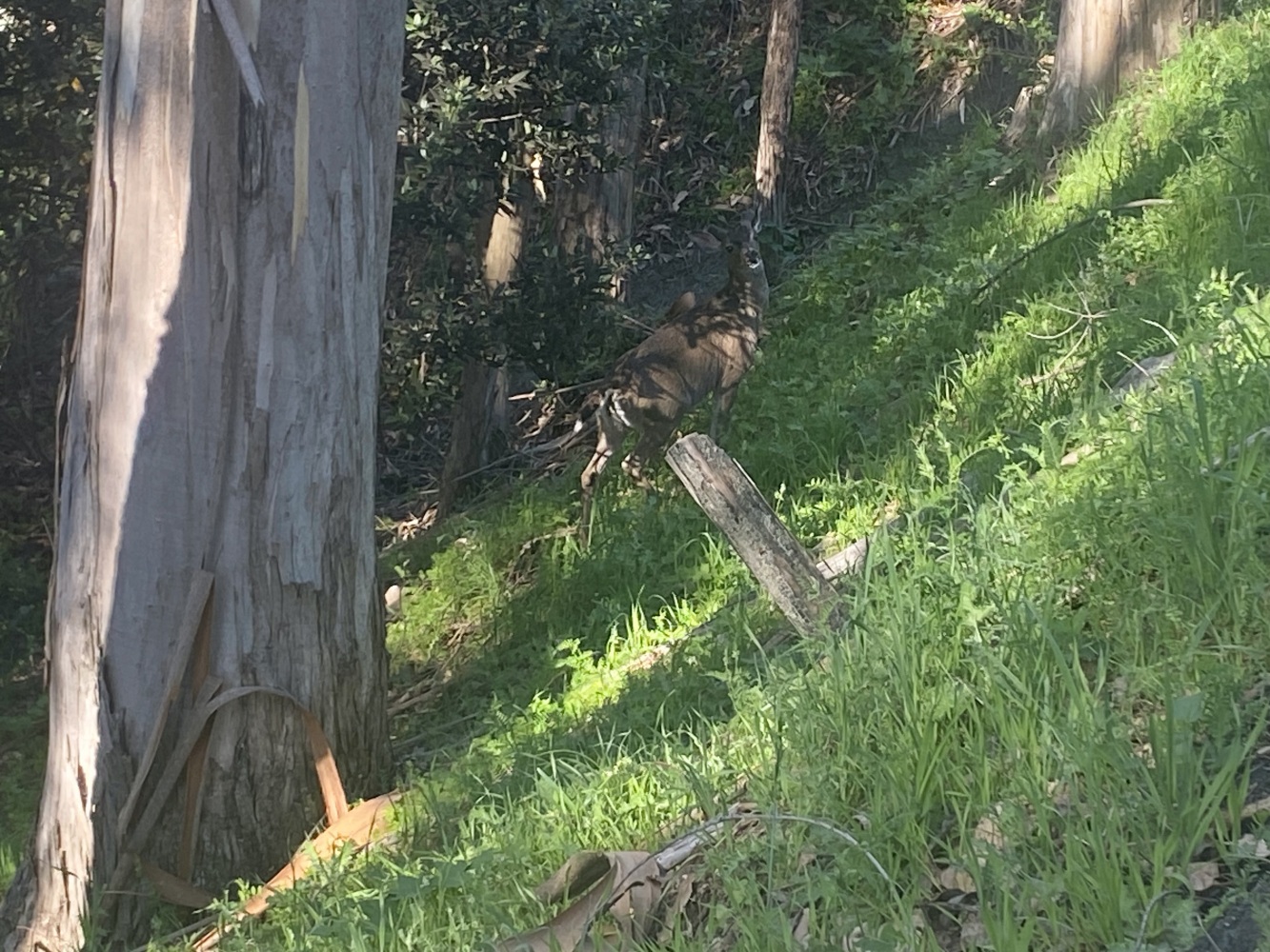 Bugün evimizin arkasında yükselen Tamalpais Dağı Milli Parkı’ndaki Sun Trail patikasına gittik. Evden başladık, No:1 devlet yolundan yürüdük, Tamalpais-Muir Woods yolundan devam edip Sun Trail patikası girişinde mola verdik. Sun Trail patikasını dolanıp geldiğimiz rotadan döndük. Muir Woods’un muhteşem panoramik ormanlarında devasa ağaçların dibinden, arada güneşli patikalarında, bizim payımıza düşen toplamda 13 küsür kilometre ile güzel bir etkinlik oldu.